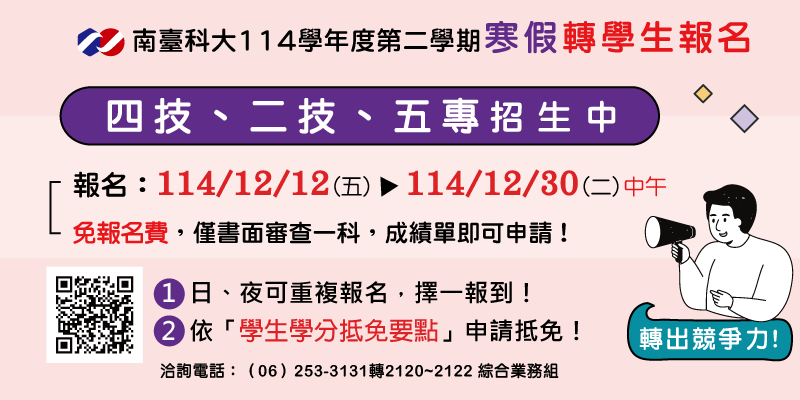 114學年度第二學期寒假轉學考招生