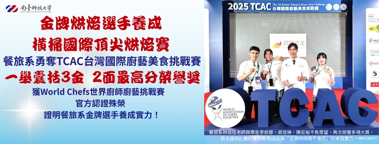 金牌烘焙選手養成!南臺科大餐旅系橫掃TCAC國際挑戰賽,勇奪三金二最高分